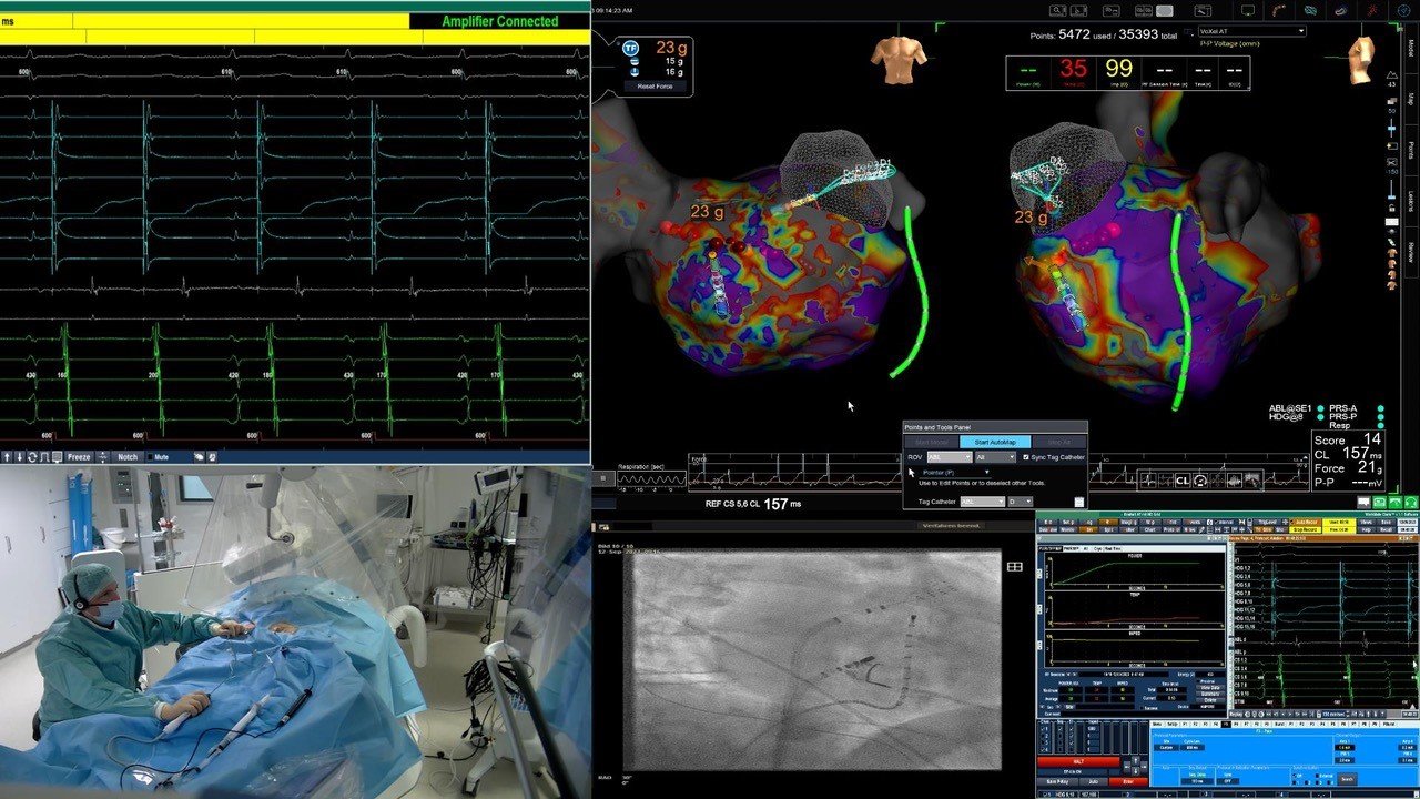 Figure 1: Screen view of the Medinbox: Remote support from the home office during catheter ablation of atrial tachycardia at the University Heart Center Lübeck (C. Heeger)